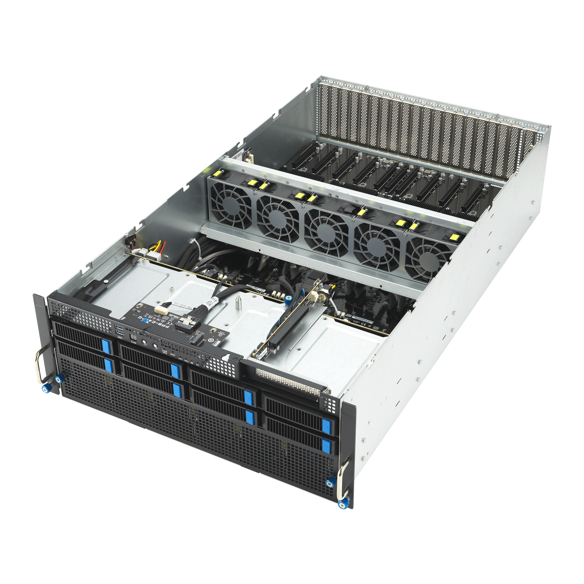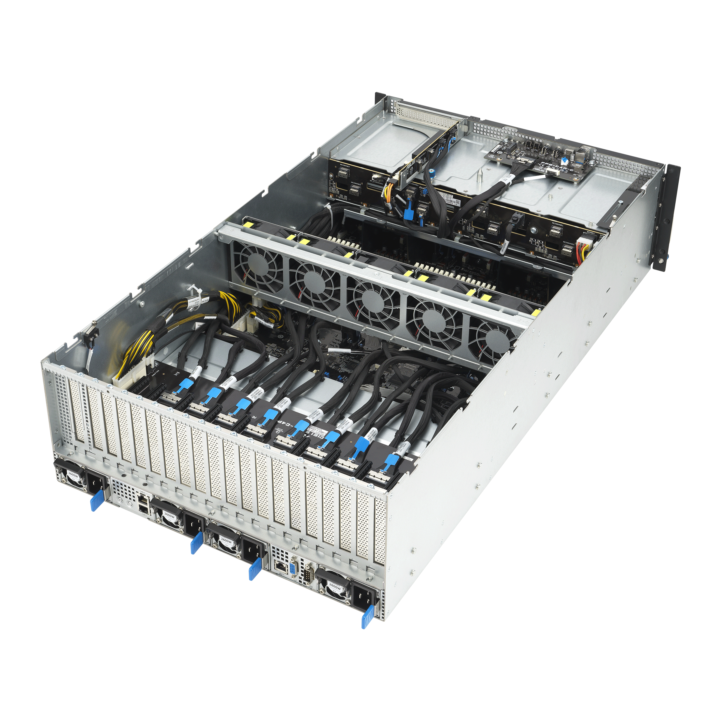 4U 双插槽 GPU 服务器采用第4代英特尔至强可扩展处理器,支持8个双插槽 GPU, PCIe 5.0 Switch 解决方案, 液冷散热解决方案, 支持 32个 DIMM, 13个 PCIe 5.0, 8个 NVMe, 4个 3000W Titanium 电源, OCP 3.0 和 ASMB11-iKVM
